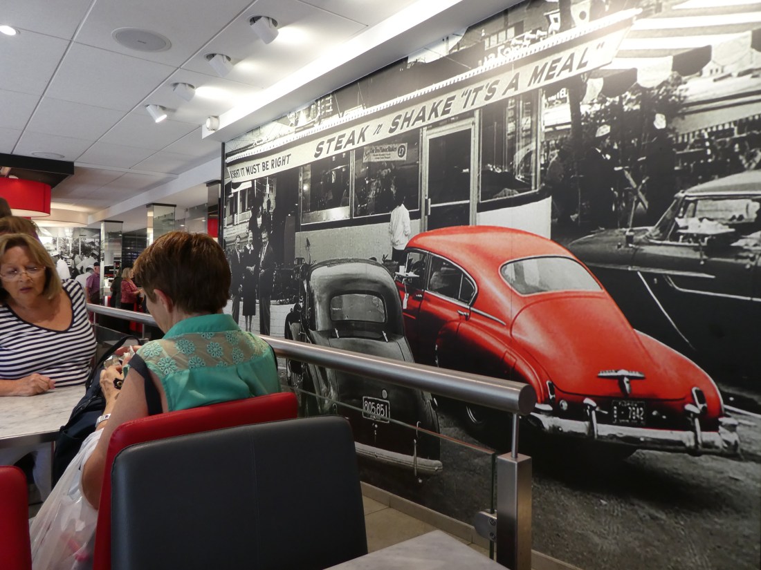 We ate in this burger place called “Steak and Shake” and then realized it’s an American chain that’s been around since the 60’s. The walls were papered with old photos from their American counterparts. As a rule, we observe a “no American chains” embargo when we travel because we want to experience the local food.