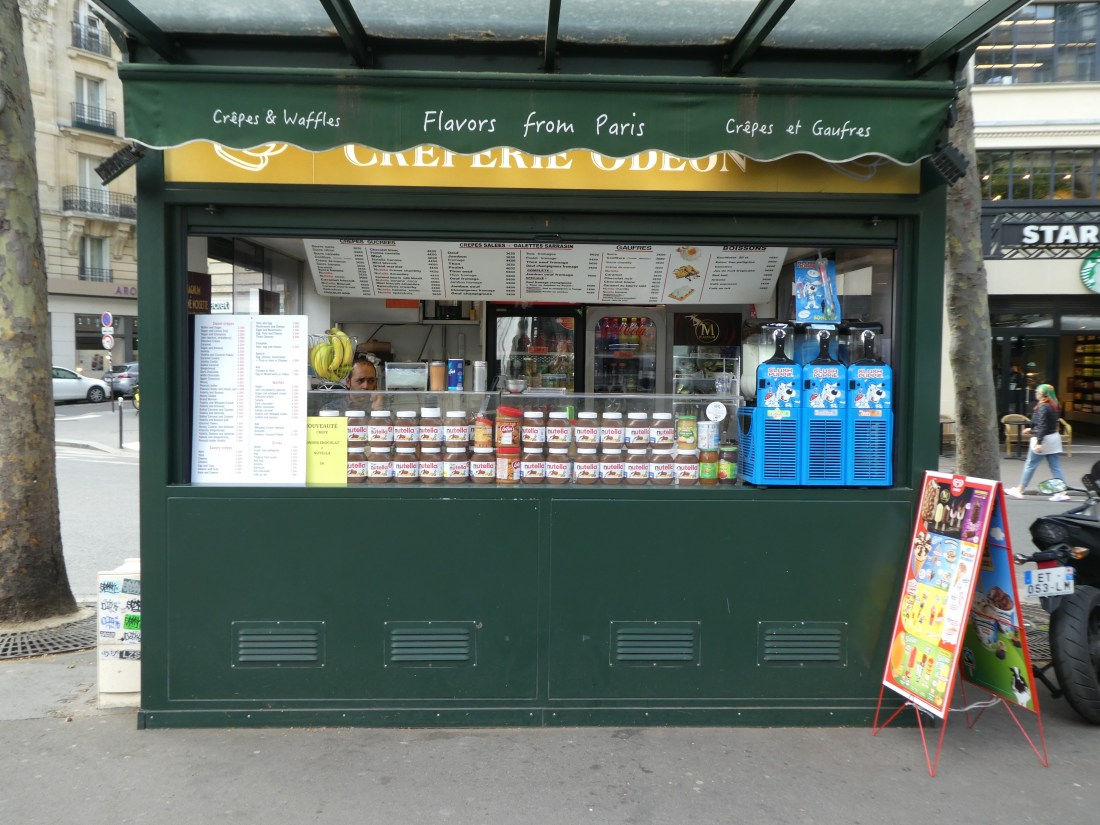Okay, guess which kind of crepe is most popular? Why it’s Nutella, of course, and there are stands like this one everywhere. And Nutella is also very popular in restaurants.
