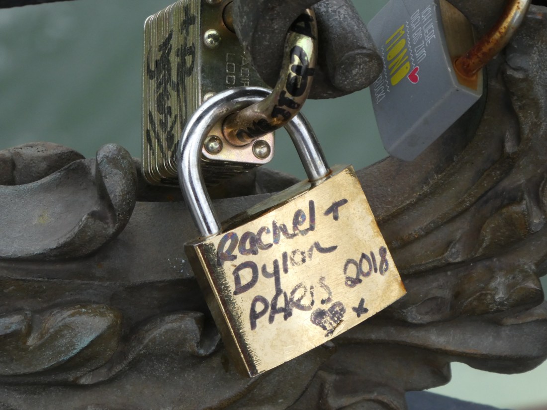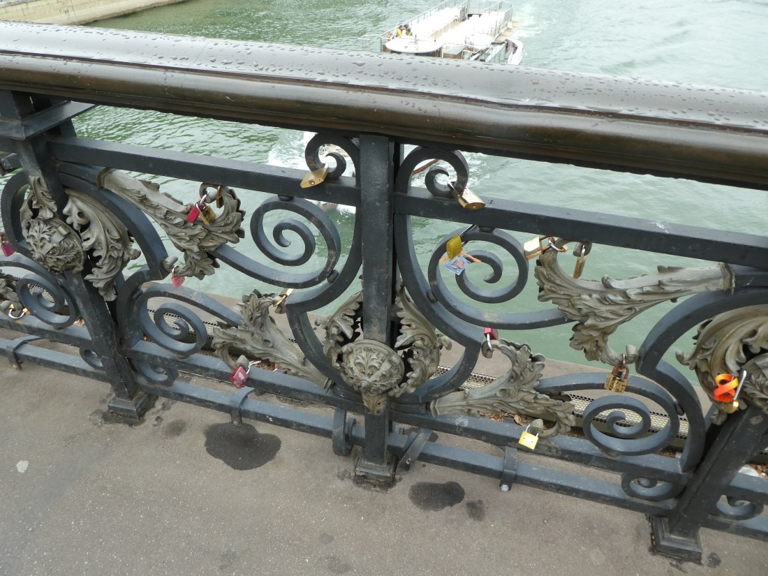 Several years ago Paris took all of the Love Locks off of the bridges because they were concerned that eventually they wouldn’t be able to support the weight. Some of the bridges were even affixed with glass panels so that locks couldn’t be attached to them. However, this is one of the bridges that is starting to collect them once again.