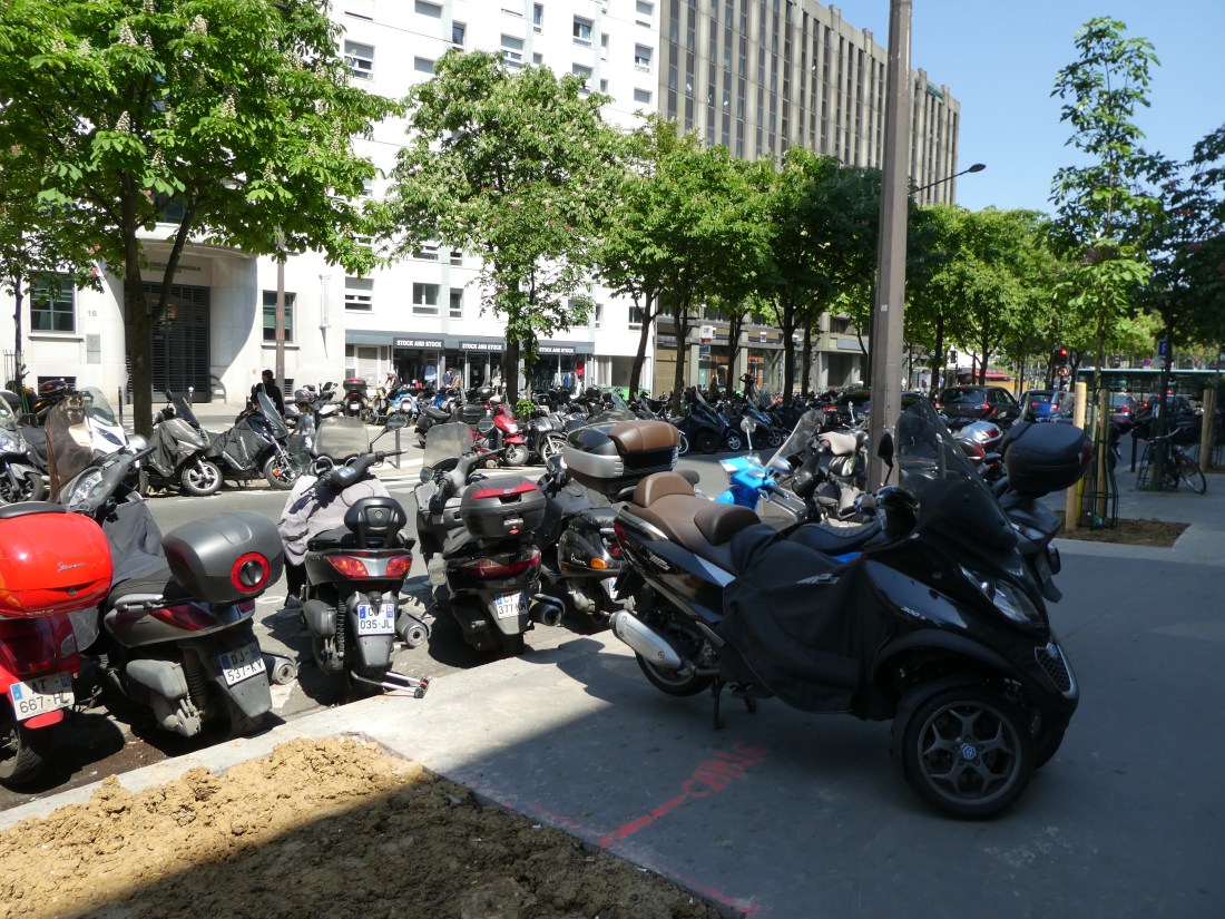 Paris has a lot of motorcycles because it’s a lot easier – and cheaper – to park a motorcycle than a car. And they’re much easier to maneuver in tight spaces, and Paris is nothing but tight spaces.